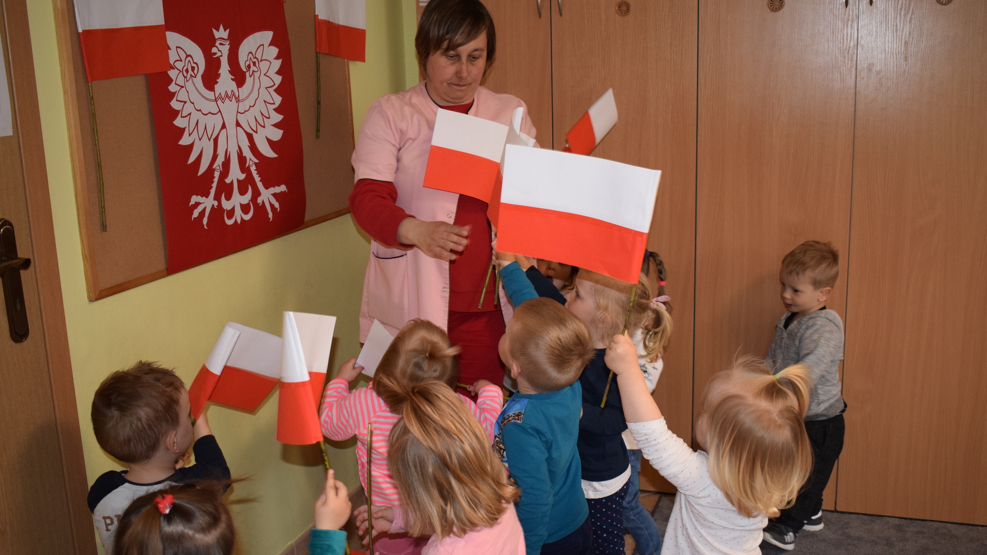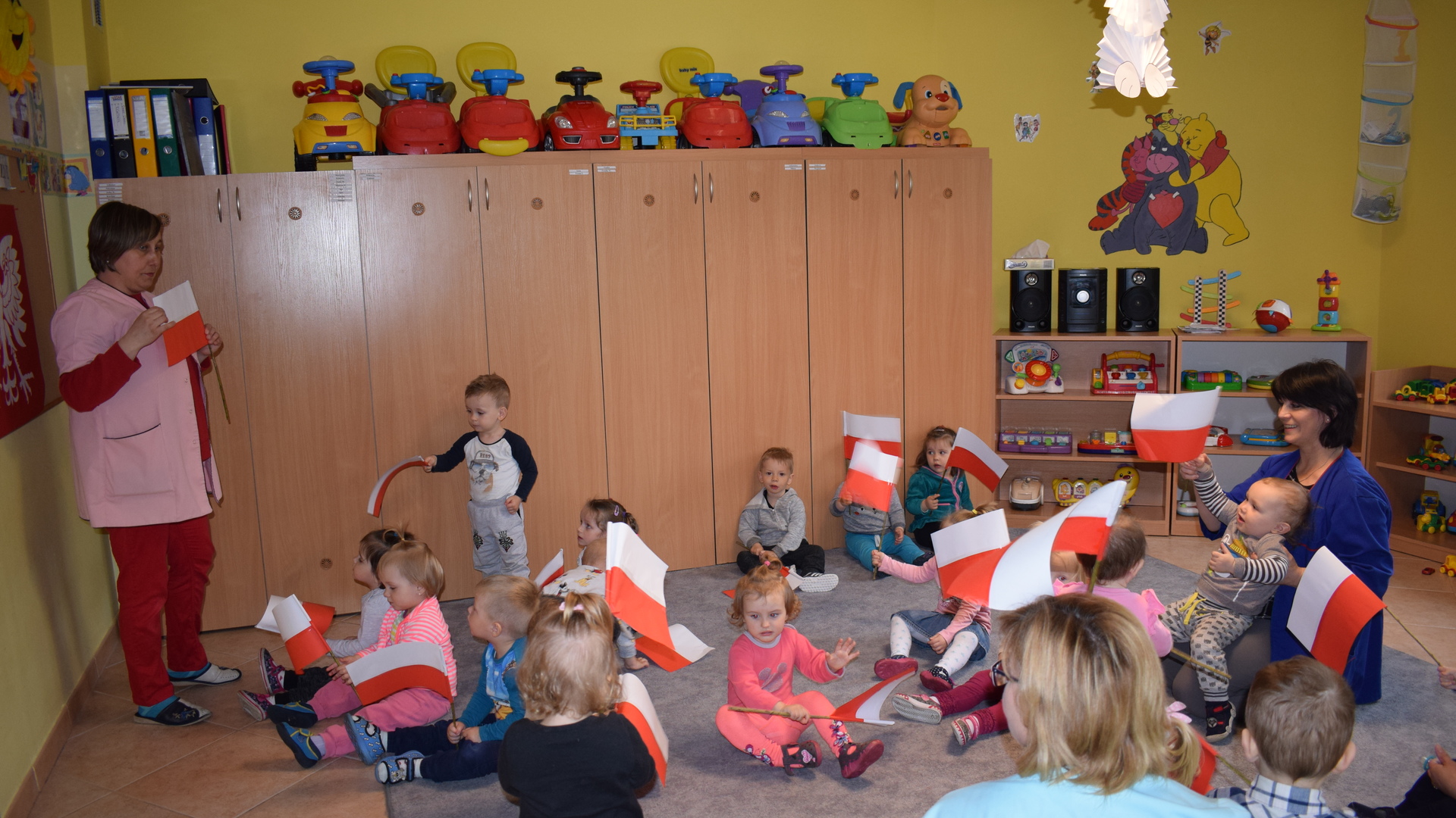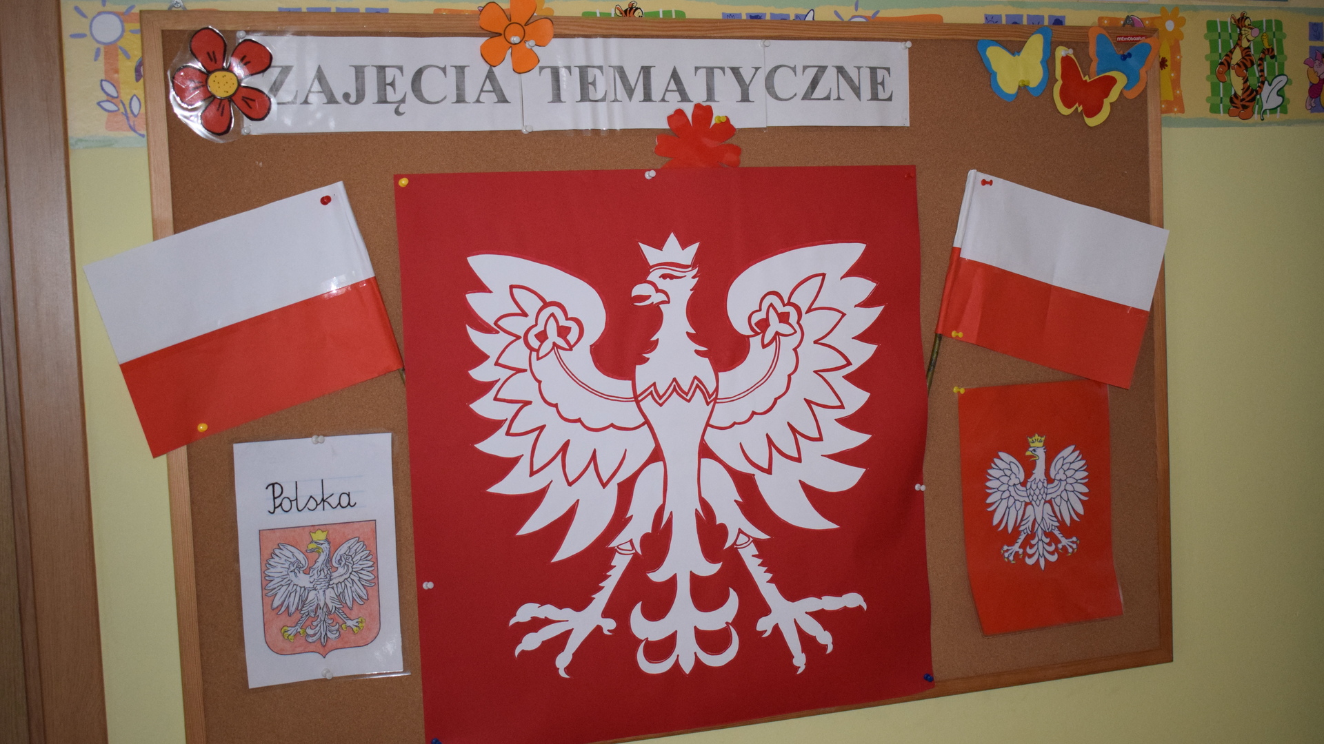 Ostatnie zajęcia poświęcone zostały tematyce patriotycznej, zapoznawaliśmy się z polskimi symbolami, słuchaliśmy pieśni patriotycznych, dzieci wykonały pracę plastyczną. Ważne jest, aby już wśród najmłodszych kształtować postawy patriotyczne oraz promować polskie symbole narodowe.