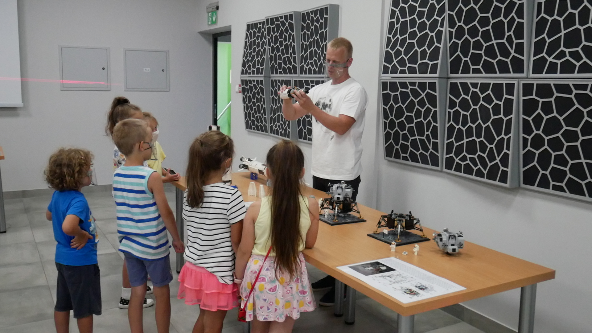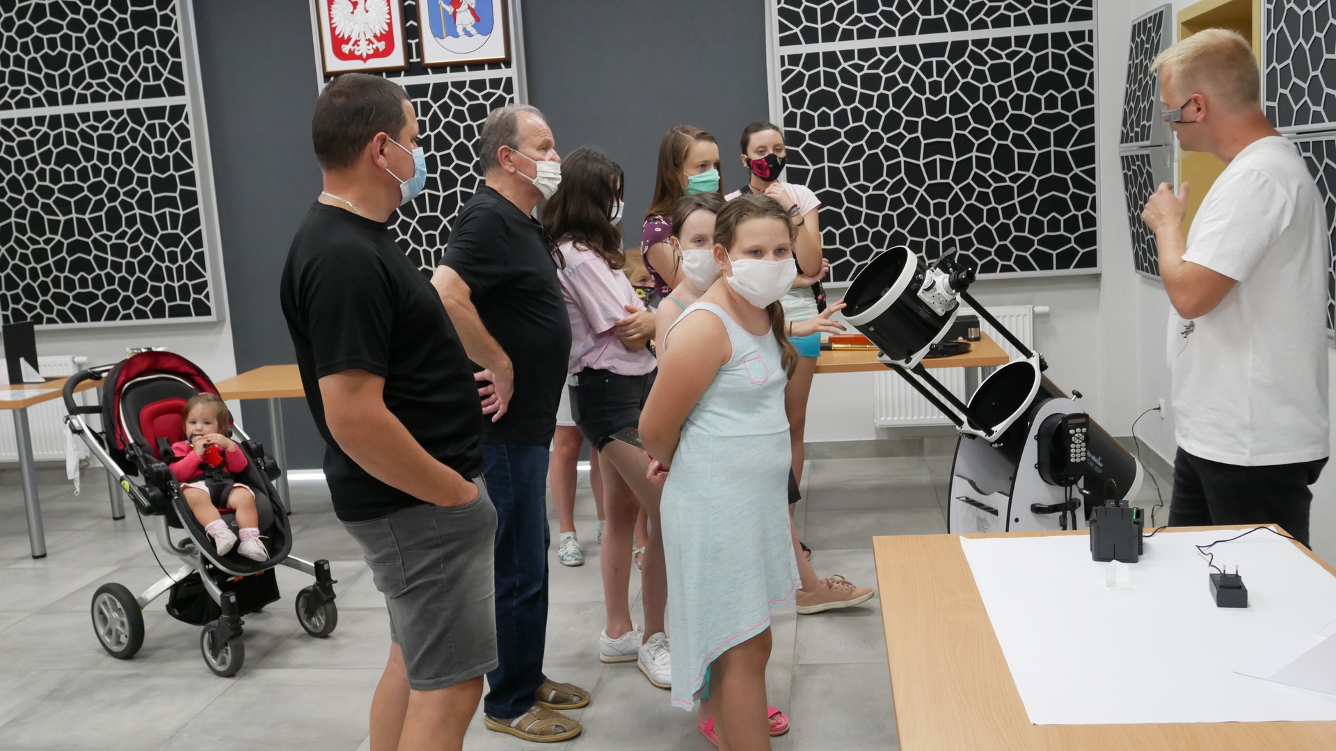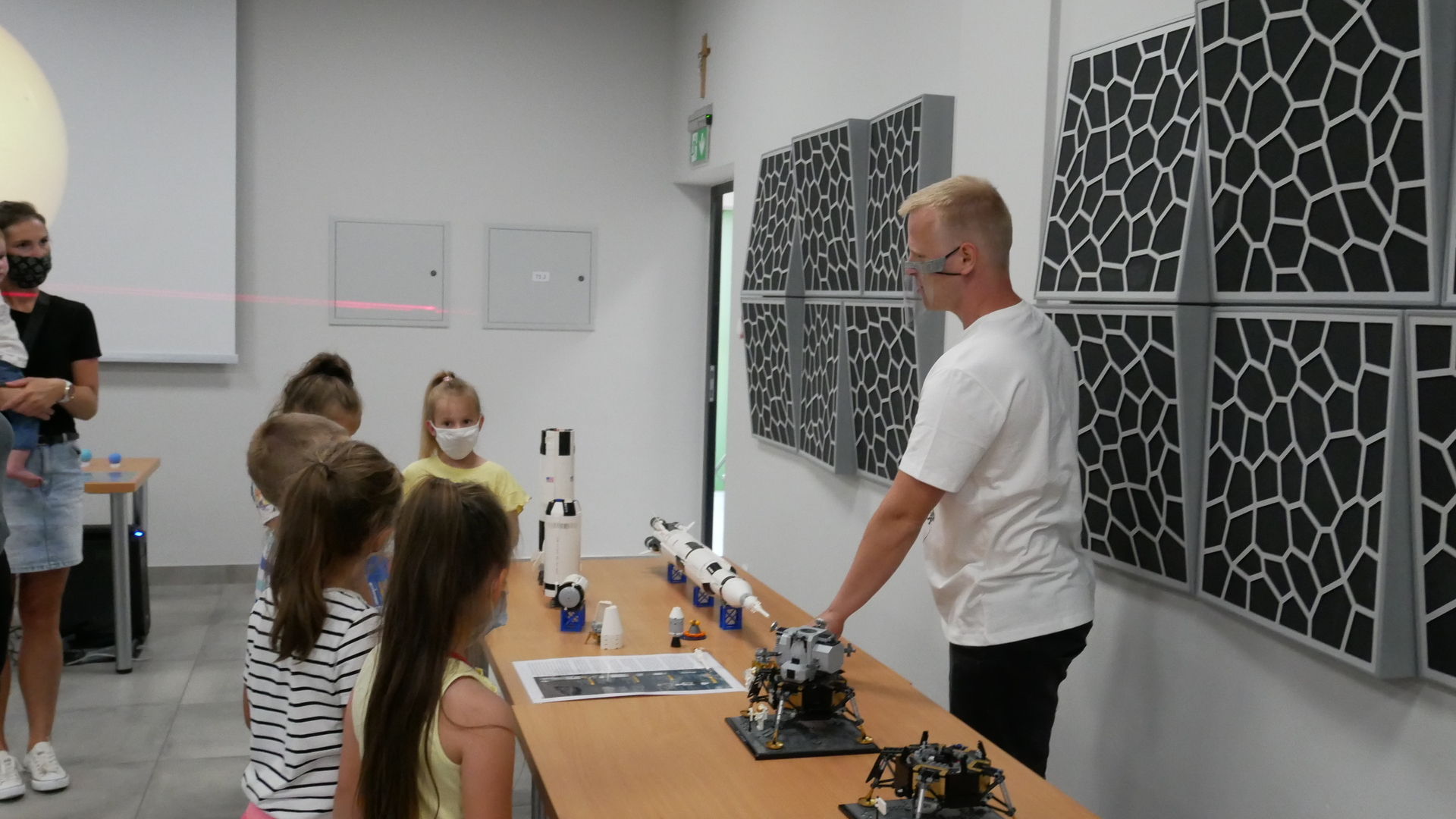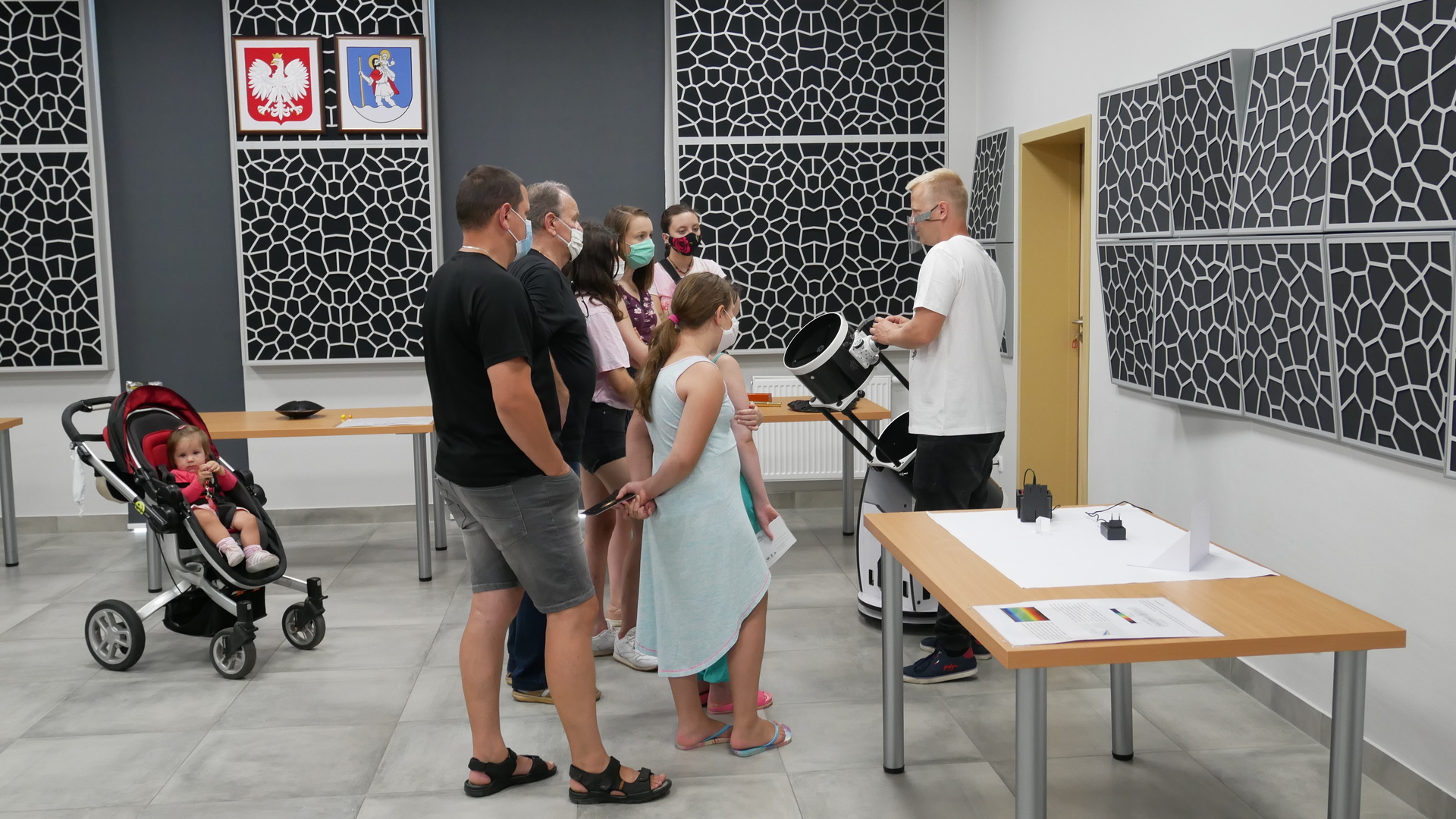 W środę 29 lipca w 2020r. Astro Centrum w Chełmcu odbył się dzień otwarty. Można powiedzieć, że był to dzień doświadczeń, gdyż sale Astro wypełnione były różnego rodzaju przyrządami i pomocami naukowymi do przeprowadzania doświadczeń. Można było posłuchać i zobaczyć jak przebiegał lot załogowy misji APOLLO na księżyc na przykładzie modelu z klocków LEGO, objaśnione było też zjawisko złudzenia optycznego, omówienie prawa odbicia i prawa załamania światła, gotowaliśmy też wodę w próżni oraz zapalali żarówki przy kuli plazmowej. Niestety zajęcia przebiegały w reżimie sanitarnym, ale pomimo to cieszyły się ogromnym zainteresowaniem zarówno ze strony małych jak i większych osób.