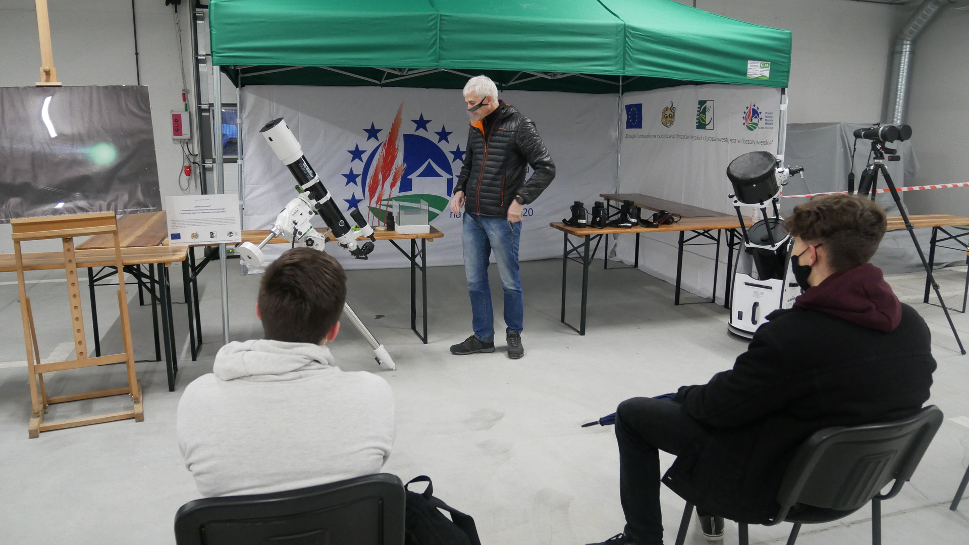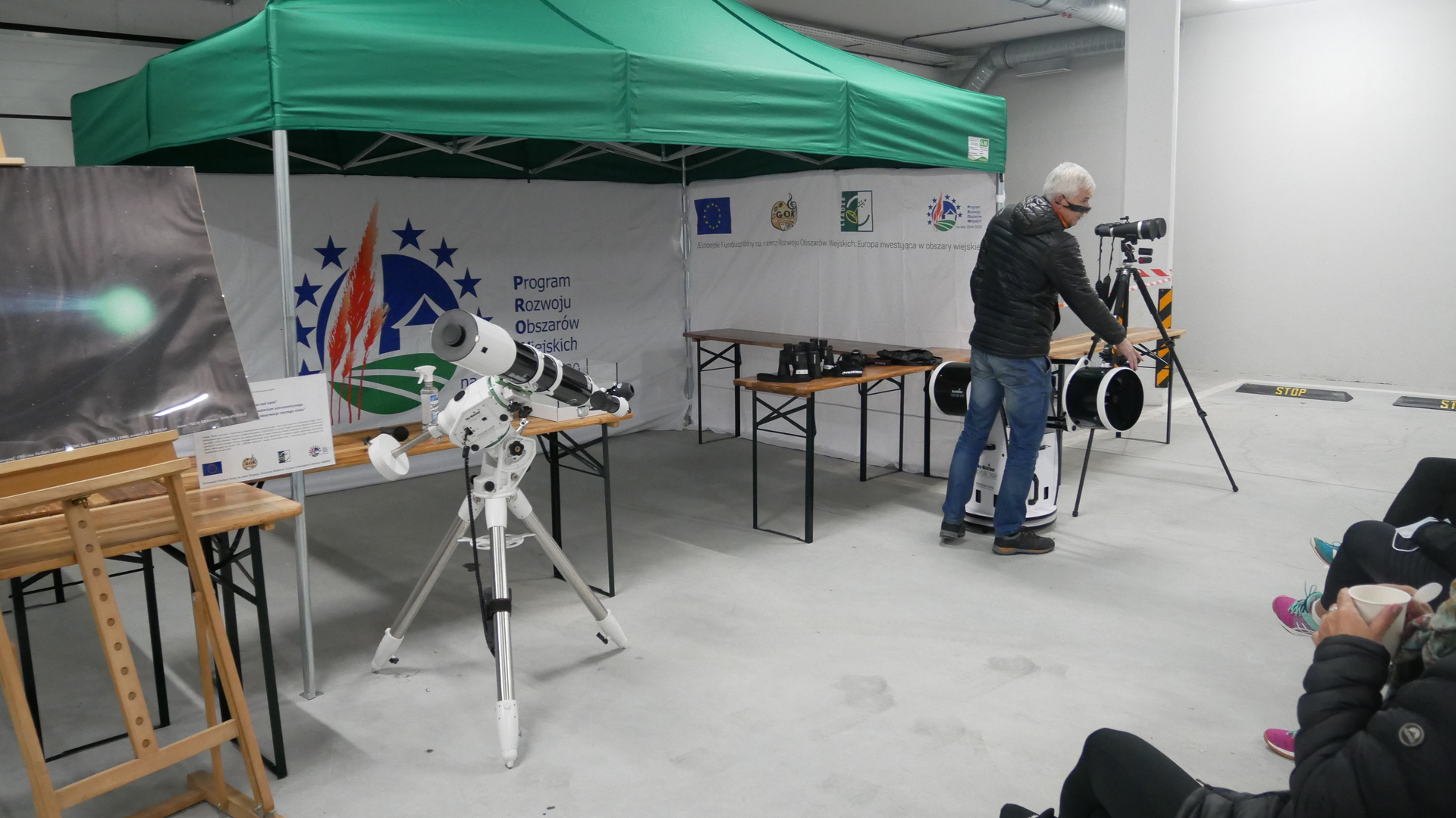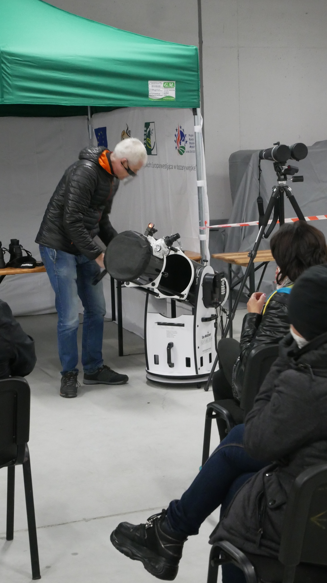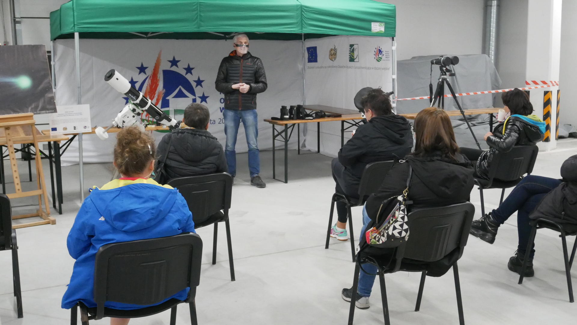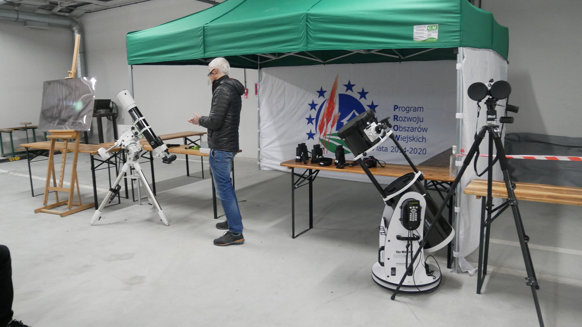 Pomimo niesprzyjającej aury wiele osób zdecydowało się znaleźć czas i odwiedzić w środowy wieczór (tj. 14.10.2020r.) ASTRO CENTRUM. Bo właśnie tam na placu obok obserwatorium i pomieszczeniach garażu odbywały się obserwacje i prezentacje sprzętu oraz wykłady dotyczące prowadzenia nocnych obserwacji. Można było zobaczyć różne rodzaje teleskopów, lunet i lornetek i dowiedzieć się jak samemu dokonywać obserwacji nieba. Każda osoba która uczestniczyła w spotkaniu dostawała pakiet zdjęć wydrukowanych w formie kartek pocztowych. Wszystkie te zdjęcia zostały wykonane przez nasze obserwatorium w Chełmcu. Ze względu na to że w październiku wieczory są chłodne organizator GOK w Chełmcu zadbał również o ciepłe napoje i ciepły poczęstunek dla uczestników obserwacji.