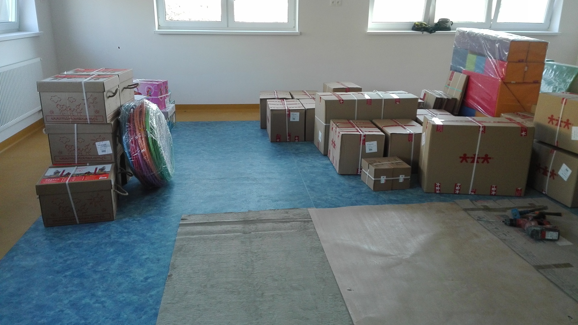 Wszyscy z niecierpliwością czekamy na zakończenie prac w Przedszkolu w Paszynie. Dobrą wiadomością dla naszych przyszłych adeptów jest fakt, że zabawki już czekają a plac zabaw lada dzień będzie gotowy do zabawy...