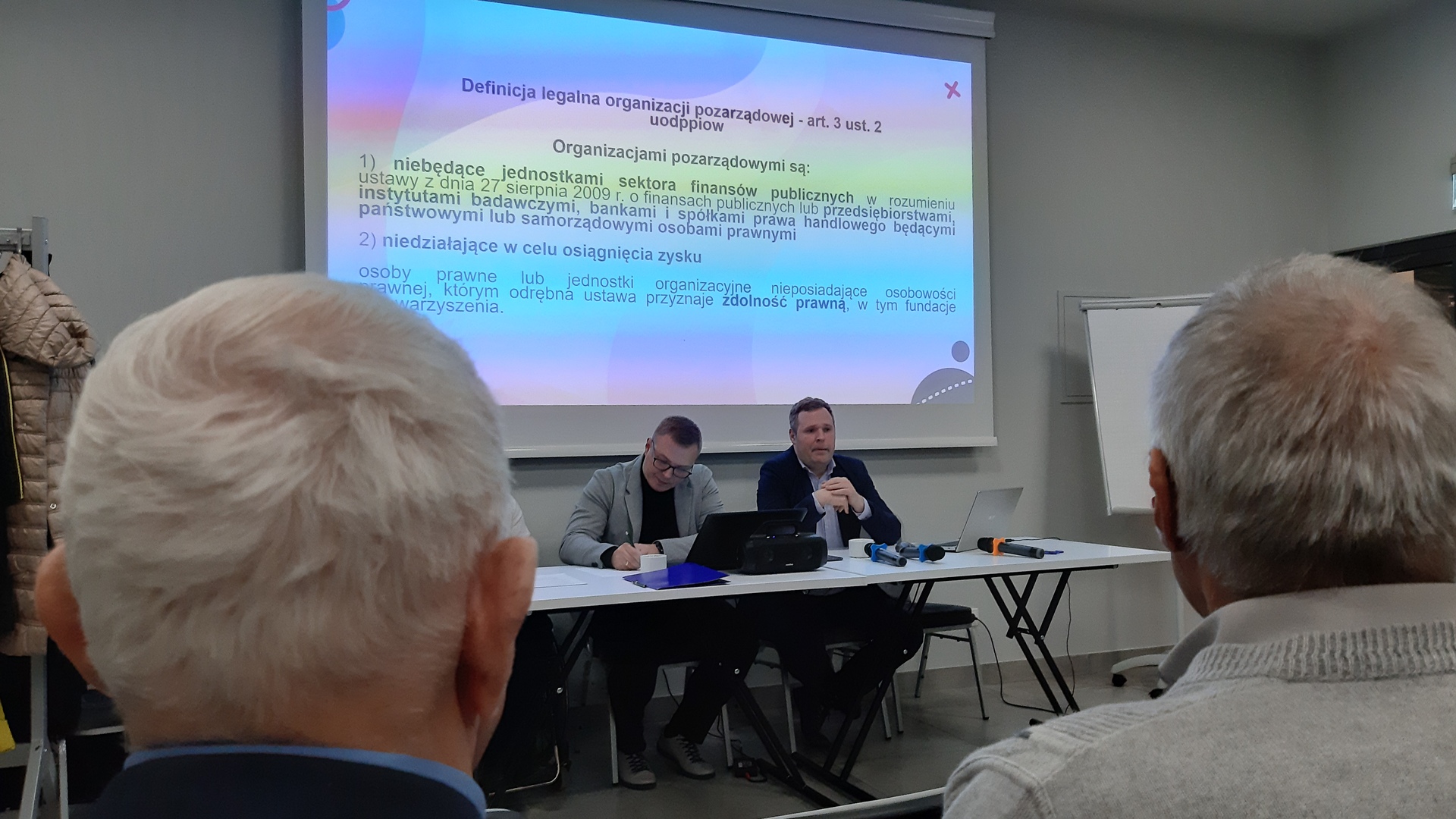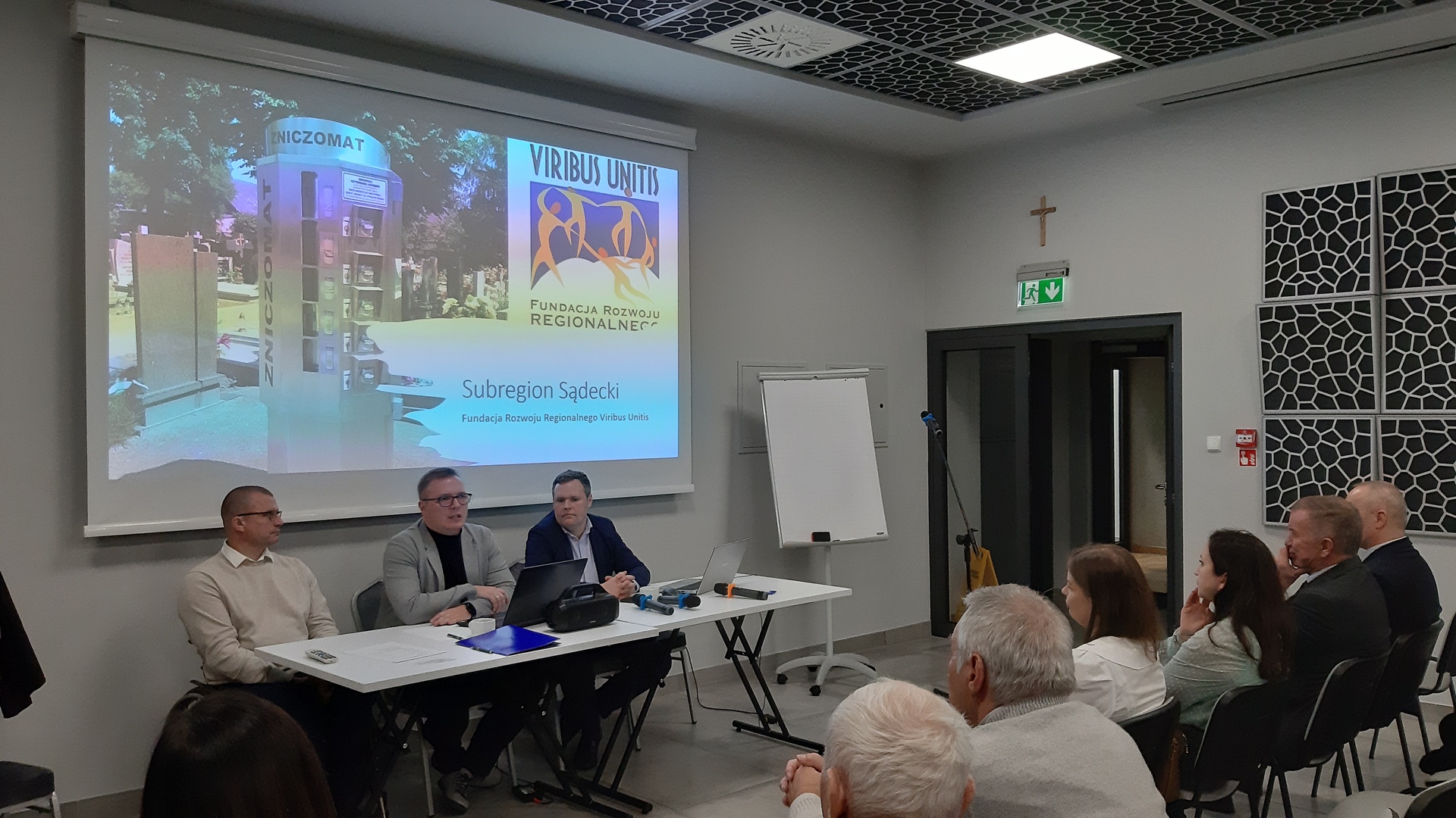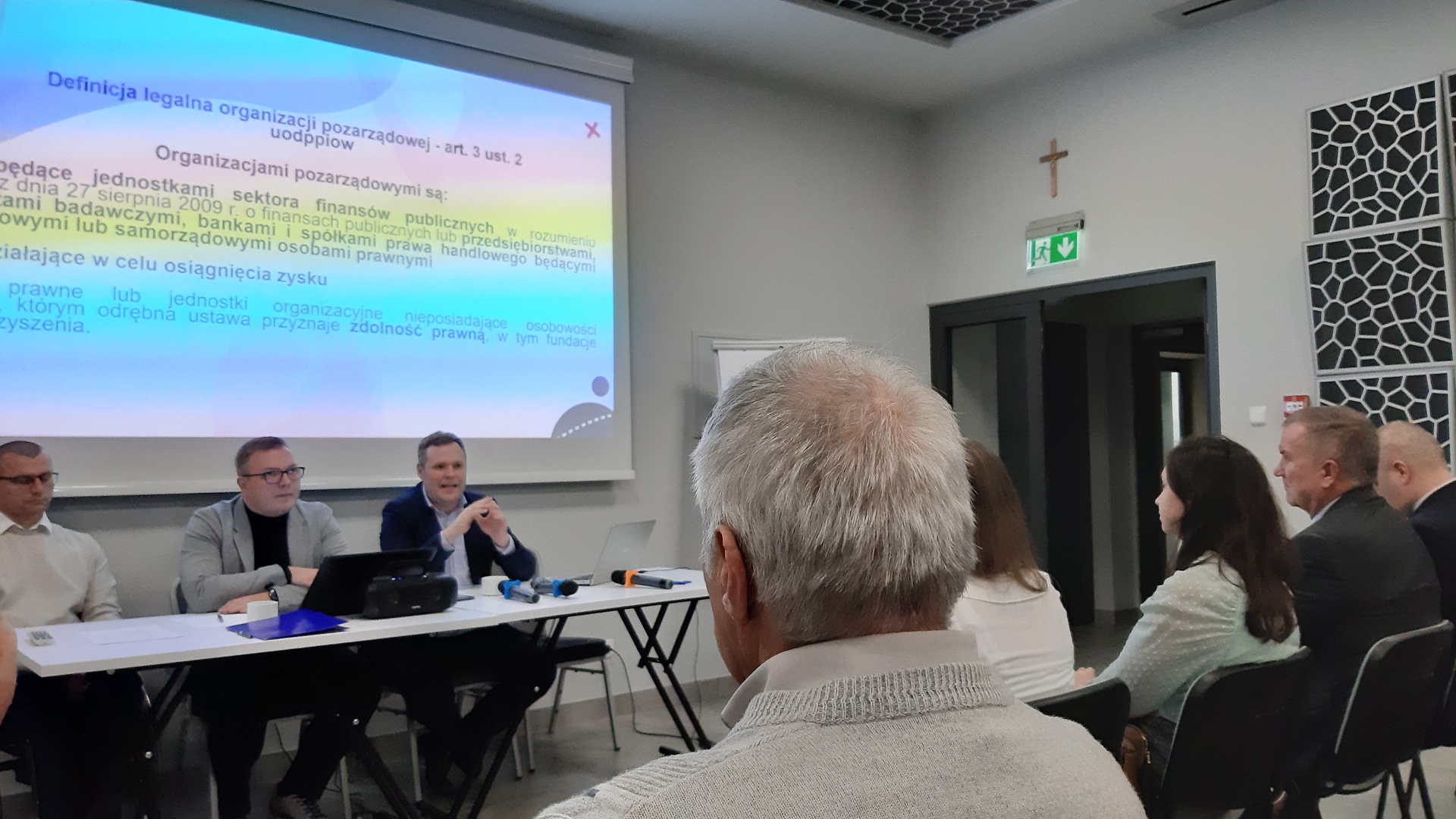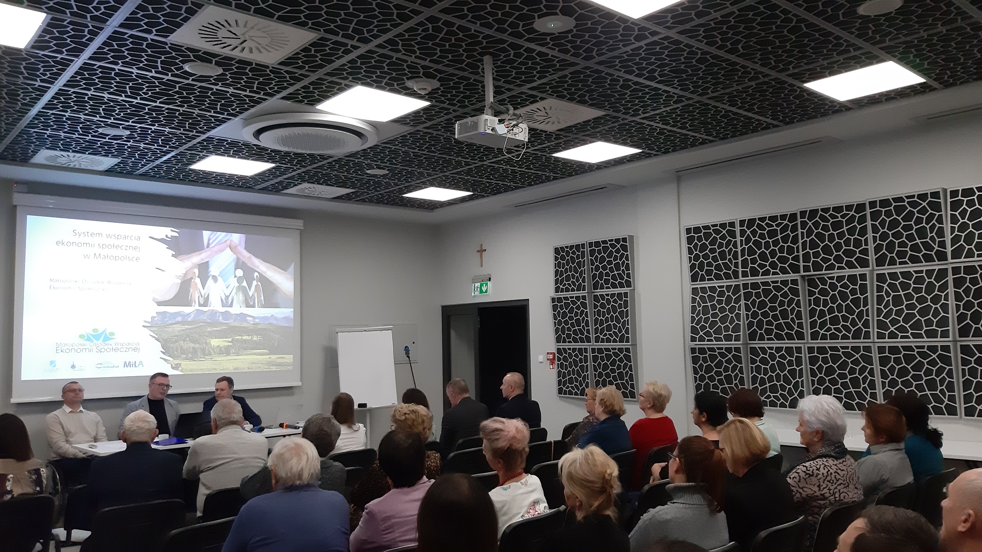 Celem przekazania organizacjom pozarządowym jak najbardziej przydatnej i merytorycznej wiedzy został zorganizowany panel dyskusyjny z udziałem 3 ekspertów specjalizujących się w tematyce ekonomii społecznej. Osoby Pana Krzysztofa Braś – Prezesa Towarzystwa Oświatowego Ziemi Chrzanowskiej oraz koordynatora merytorycznego i doradcy biznesowego w Małopolskim Ośrodku Wsparcia Ekonomii Społecznej, Pana Michała Mółka - doktora nauk prawnych, specjalizującego się z zakresu prawa administracyjnego, w tym prawa organizacji pozarządowych oraz mediacji oraz Pana Piotra Wojtas – kierownika Zakładu Aktywności Zawodowej w Stróżach zrobiły na wszystkich zebranych niesamowite wrażenie. Lekkość wypowiedzi a zarazem ich głęboka wiedza sprawiły, że z prawdziwą przyjemnością słuchało się tej dyskusji. Podczas panelu został również zaprezentowany film o podmiotach ekonomii społecznej, przybliżający podmioty ekonomii społecznej, prezentujące szereg swoich działań dla społeczności lokalnej. Film ukazał również powstałe Centrum organizacji pozarządowych Korony Sądeckiej jako ciekawa i innowacyjna inicjatywa na obszarze LGD „Korona Sądecka”.