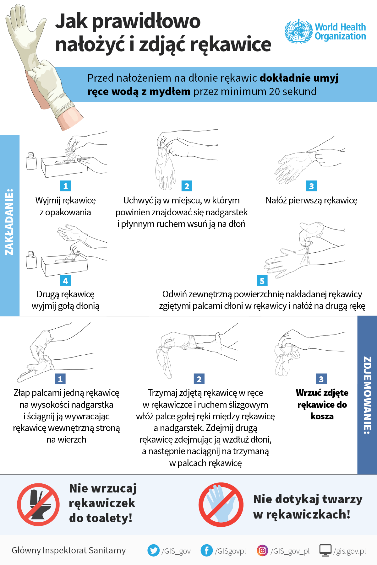 Poniżej podstawowe zasady korzystania z maseczki, rękawiczek oraz mycia i dezynfekcji rąk.