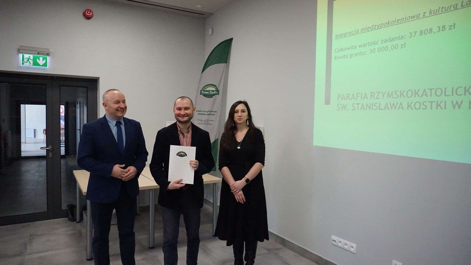 Miło nam poinformować, że 16 marca br. Prezes LGD „KORONA SĄDECKA” – Pan Marcin Bulanda oraz Członek Zarządu – Pani Kinga Chrząstowska przekazali 31 umów następującym grantobiorcom: