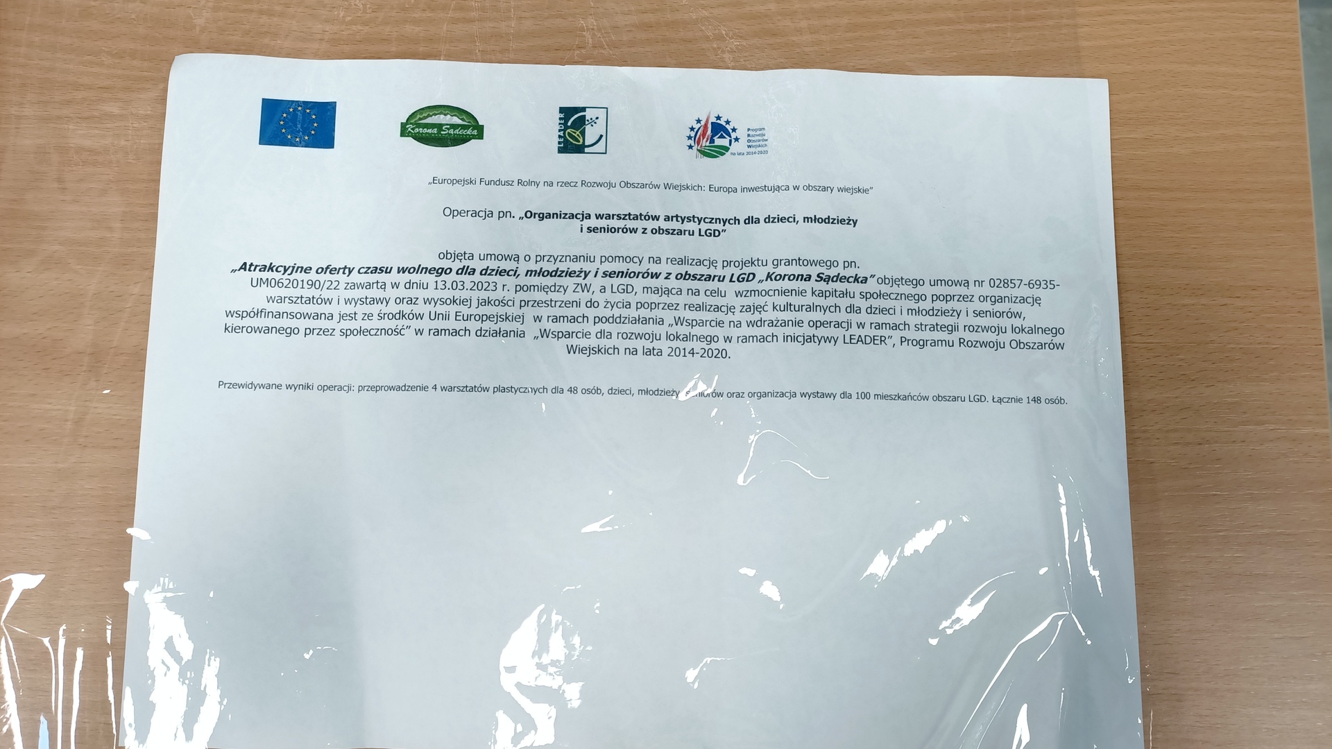 Warsztaty zostały zrealizowane w ramach projektu pn. „Organizacja warsztatów artystycznych dla dzieci, młodzieży i seniorów z obszaru LGD”. Projekt był współfinansowany ze środków Unii Europejskiej w ramach poddziałania „Wsparcie na wdrażanie operacji w ramach strategii rozwoju lokalnego kierowanego przez społeczność” w ramach działania „Wsparcie dla rozwoju lokalnego w ramach inicjatywy LEADER”, Programu Rozwoju Obszarów Wiejskich na lata 2014-2020.