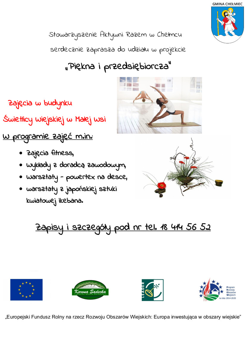 Stowarzyszenie Aktywni Razem w Chełmcu zaprasza kobiety mieszkanki obszaru LGD Korona Sądecka do uczestnictwa w zajęciach zorganizowanych.